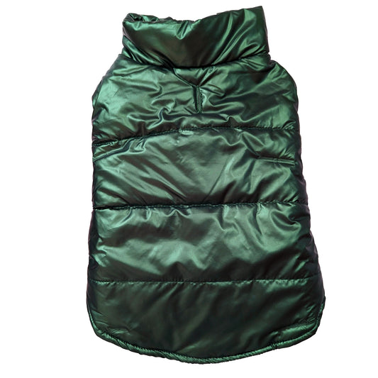 Fashion Pet Coat- Metallic Puffy Coat, Green, M