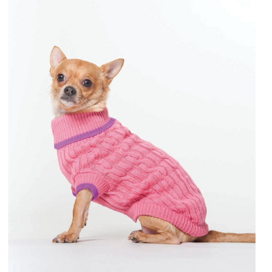 Fashion Pet Classic Cable Dog Sweater- Pink, XS