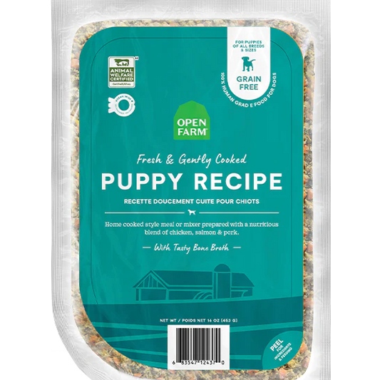 OPEN FARM Puppy Recipe- Frozen Gently Cooked Chicken, Salmon, & Pork 16oz