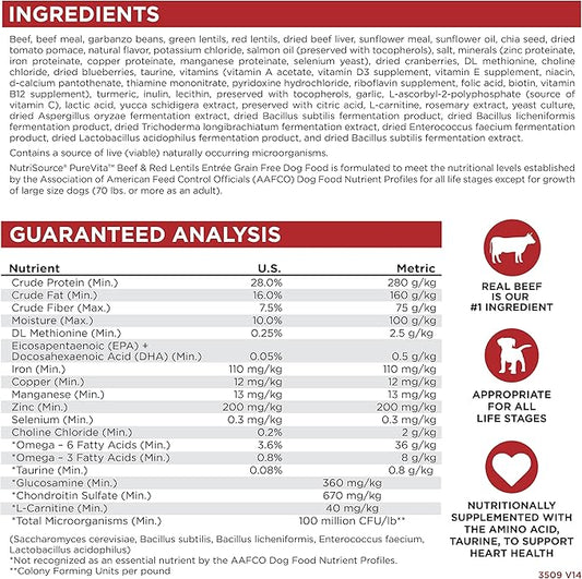 Pure Vita Grain-Free Beef & Red Lentils Entree 25lbs