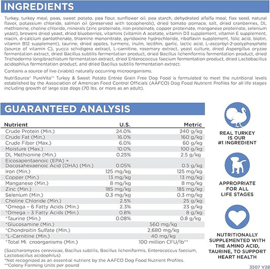 Pure Vita Grain-Free Turkey & Sweet Potato Entree 25lbs