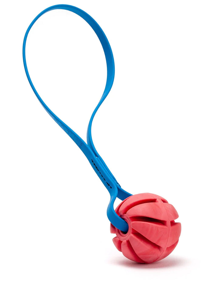 Instead of spiraling about what toy to get your canine companion, try our Rubber Spiral Ball with Biothane handle. Crafted with durable rubber material, this ball is suitable for endless hours of gnawing, tossing, and floating. Features a waterproof Biothane handle for solid grip, making it perfect for ultimate launching. This toy is great for playing catch at the park or doggy-paddling in the pool.