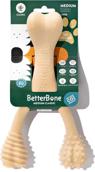 Pet parents looking for a chew toy that balances durability with dental health benefits will love BetterBone Medium Density Classic Flavor Dog Chew Toy. This option is perfect for moderate chewers, offering a natural, healthier alternative to traditional chew toys. Plus, it's made with all-natural, food-grade ingredients that are safe for your pup to chew and digest. Unlike other chews made from nylon or rawhide. Plus, BetterBone Medium is designed to be gentler on teeth while still being durable. It also features dental nubs, ridges, and smooth ends that work together to promote excellent dental health for your furry friend. You’ll love that this chew toy has no harmful ingredients, as it keeps your pup entertained and engaged.