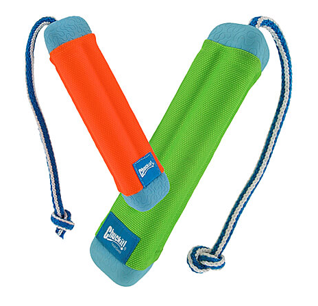 The Chuckit Amphibious Bumpers are excellent water retrieve toys. They float high on the water making them easy for your dog to see and to pick up without ingesting lots of extra water. The memory foam like material inside the heavy-duty canvas makes them easy to carry and great for soft-mouthed dogs that don't like hard bumpers.