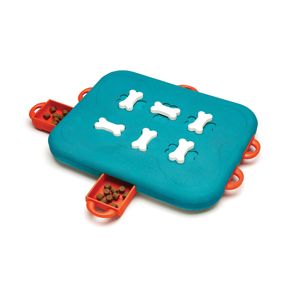 The Dog Casino interactive treat puzzle is a level 3 advanced dog game from Nina Ottosson by Outward Hound that's ideal for bored dogs! This interactive dog puzzle features six treat drawers for dog treats which can be accessed by twisting the bone locks. Just simply place the treats in the drawers, slide them in, and twist the bones for an added sequential step challenge. Your pup will enjoy pawing, sniffing, and nudging around to reveal the hidden tasty rewards! The Dog Casino interactive puzzle dog toy is made of safe and durable BPA, PVC & phthalate-free material. Easy to clean with warm water and soap between uses.