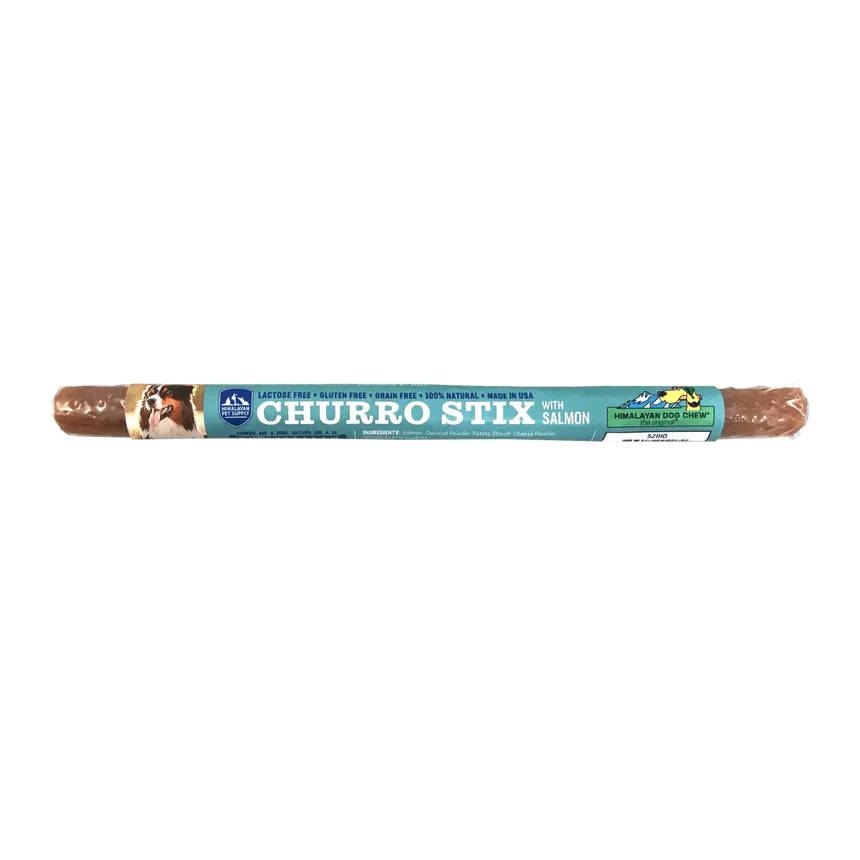 Reward your pup with their favorite chew, Himalayan Dog Chew® Churro Stix. Our iconic Churro is now available in 10” Stix, in our fan favorites: cheese, bacon, and two new irresistible flavors, salmon and water buffalo. The new larger Churro Stix provides your dog with longer, tastier, satisfying chewing entertainment. Its unique Churro shape supports oral health by massaging teeth & gums and scraping away plaque and tartar buildup. Our chews are naturally healthy and easily digestible. Churro Stix are a soft density chew, great for easy-going chewers of any age or size, from puppies to seniors.