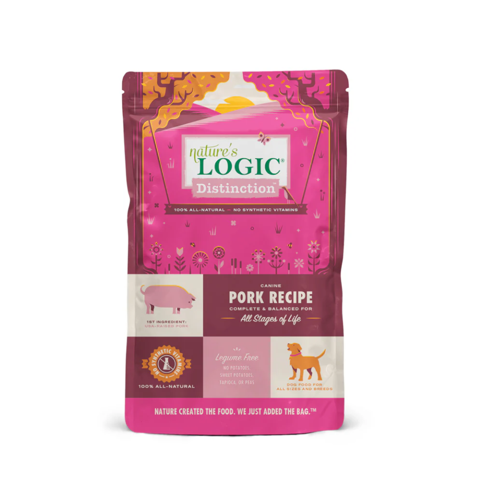Nature’s Logic® Distinction™ Canine Pork Recipe is a savory blend of pork (the first ingredient) from USA-raised pork combined with our exclusive concentrate of dried vegetables and fruits. It’s ideal for dogs of all ages, sizes, and breeds.