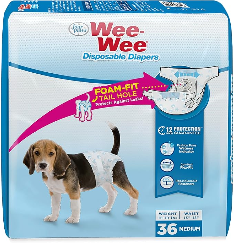 - Disposable diapers for dogs feature repositionable fasteners and double-stitched design to prevent gaps and leaks