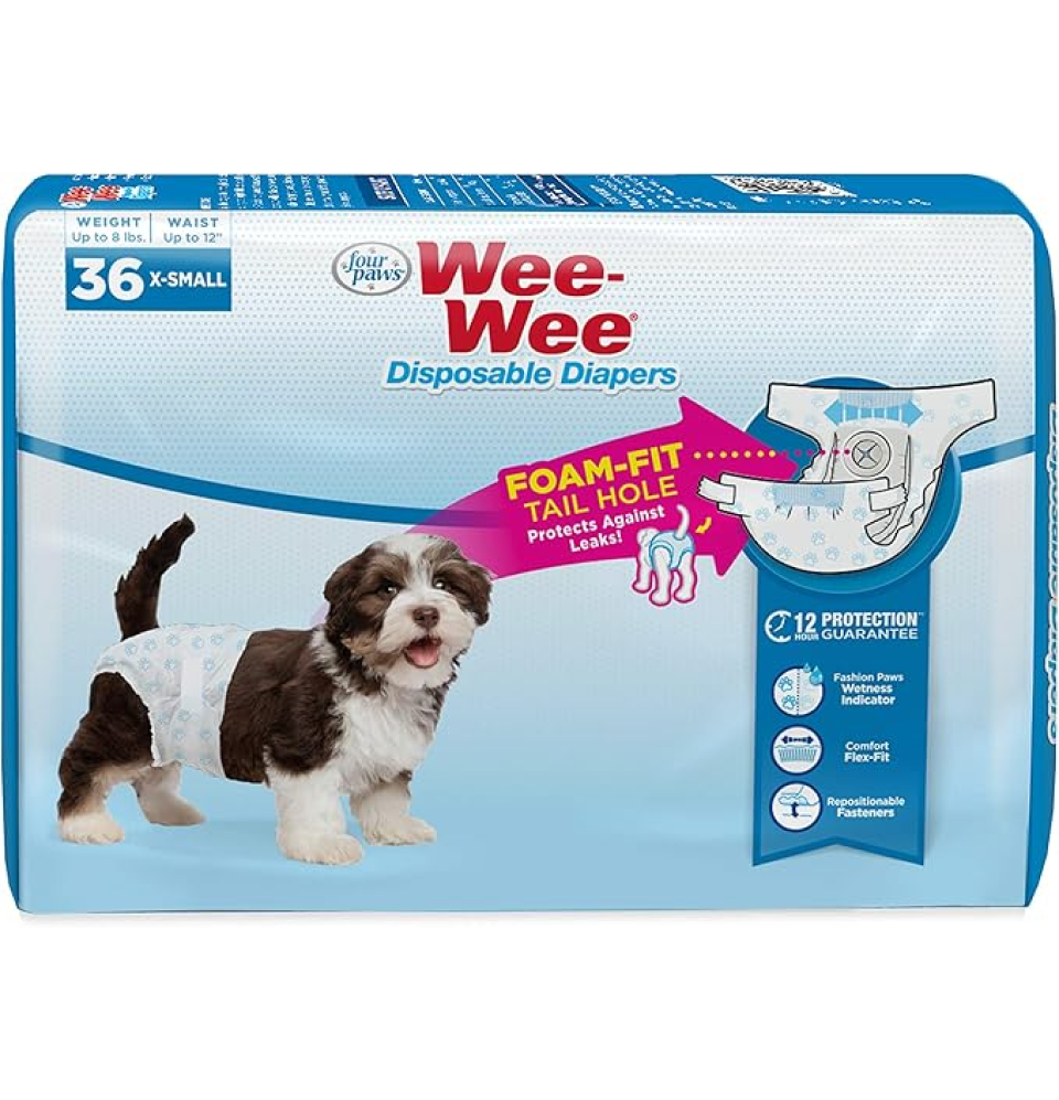 Wee-Wee Disposable Diapers, Foam-Fit Tail Hole- SM 36Ct