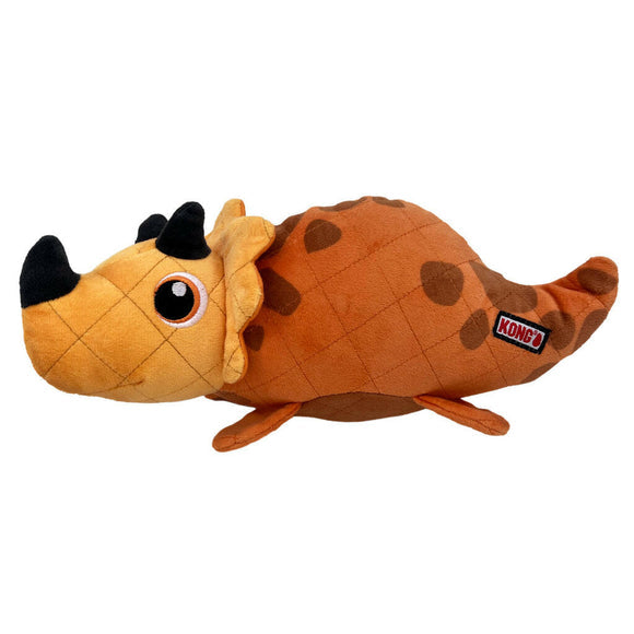 KONG Dynos Roars’ round bellies help them roll and spin on the ground, eye-catching actions that entice dogs into Jurassic adventures of fetching and tugging. An oversized squeaker sparks hunting instincts and prolongs prehistoric play. Their plush hides are lined and cross-stitched for long-lasting indoor fun.