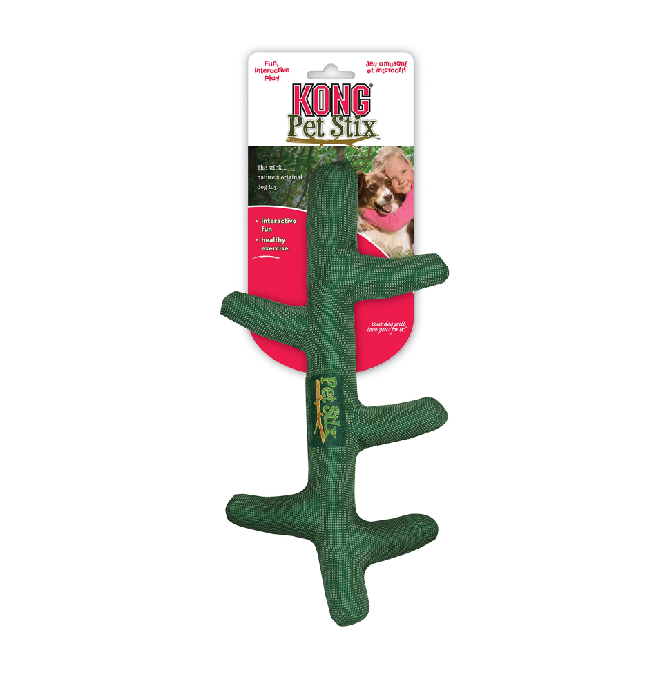 The KONG Pet Stix are fun, interactive, toss and tug toys that are great for active dogs. Made with high-grade durable nylon and minimal stuffing, dogs will enjoy this retrieving toy. Pet Stix are machine washable and made to last through endless games of fetch and tug.