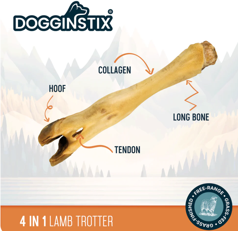 Discover Dogginstix Lamb Feet- Lamb Trotter, a nutritious and durable treat perfect for aggressive chewers. These odor-free, long-lasting chews are packed with minerals, glucosamine, and chondroitin, providing extended chew time and improving dental health. They are a natural source of essential minerals and significant protein, available in various sizes to suit your dog's needs. Benefits of Dogginstix Lamb Feet: • Extended Chew Time • Improves Dental Health • Natural Source of Minerals • Significant Protein Content • Natural & Unprocessed • Variety of Sizes • Odor-Free, Long-Lasting Treats Safety Considerations: Always supervise your dog while they chew on lamb feet to prevent swallowing large pieces. Choose treats based on your dog’s size, chewing habits, and dental health.