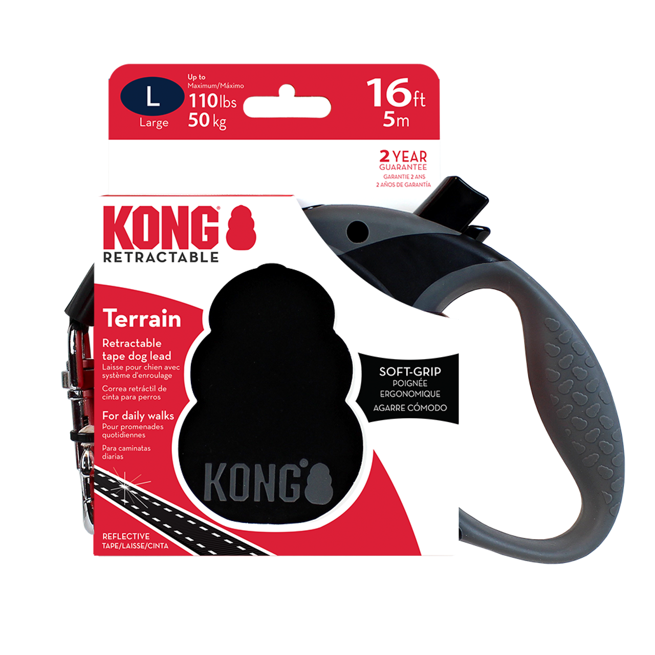 KONG Terrain, Retractable Tape Dog Lead 110lbs/16ft