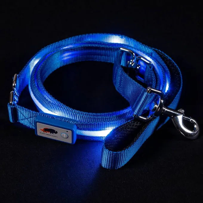 - Durable & Adjustable Lighted Dog Collar: Super strong 100% polyester webbing material with high-tensile stitching for maximum strength & dog security. Easy to put on with a quick-release buckle. And the length of our led dog collar can be adjusted to fit any size. You can even use the led dog collar for animals such as sheep, deer or ponies.