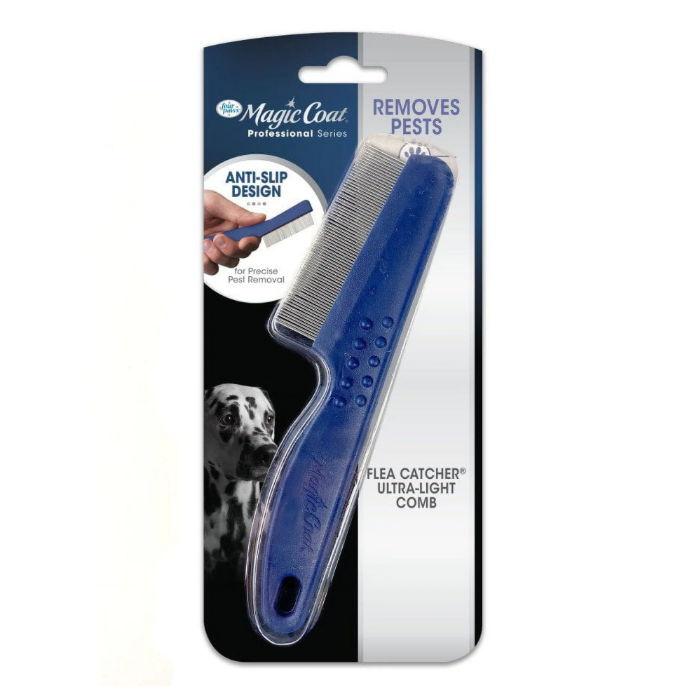 The Magic Coat Professional Series Palm Flea Comb is specifically contoured to fit into the palm of your hand for more comfortable dog brushing. Featuring stainless steel teeth, this comb easily removes fleas, ticks, and their eggs from your dog's coat. This compact flea remover for dogs features a non-slip pad for easier combing, and can reach where pests like to hide. Plus, this dog comb also removes pet dander for a happier pet and pet parent. Part of the Four Paws Pests collection, this dog grooming tool is the perfect complement to other Four Paws grooming products.
