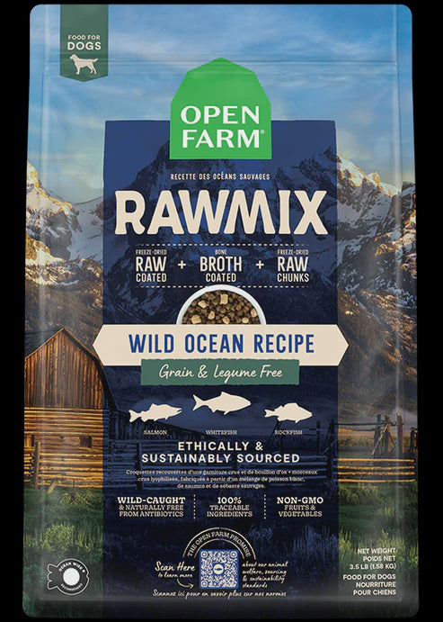 RawMix features our protein-packed kibble covered in a nutritious bone broth and freeze dried raw coating, with added chunks of cod freeze dried raw. Crafted with a blend of wild-caught whitefish, salmon and rockfish, this delicious recipe includes nutrient-dense meat and bone with no grains, legumes or any byproducts.