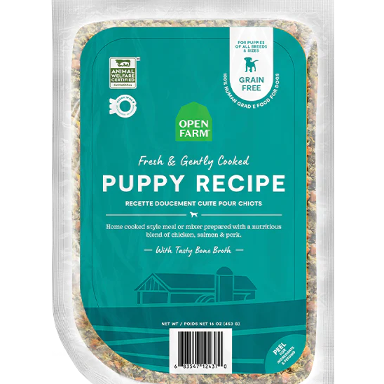 OPEN FARM Puppy Recipe- Frozen Gently Cooked Chicken, Salmon, & Pork 16oz