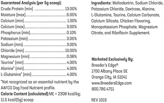 - Provides amino acids and minerals including sodium chloride, taurine, calcium, and potassium