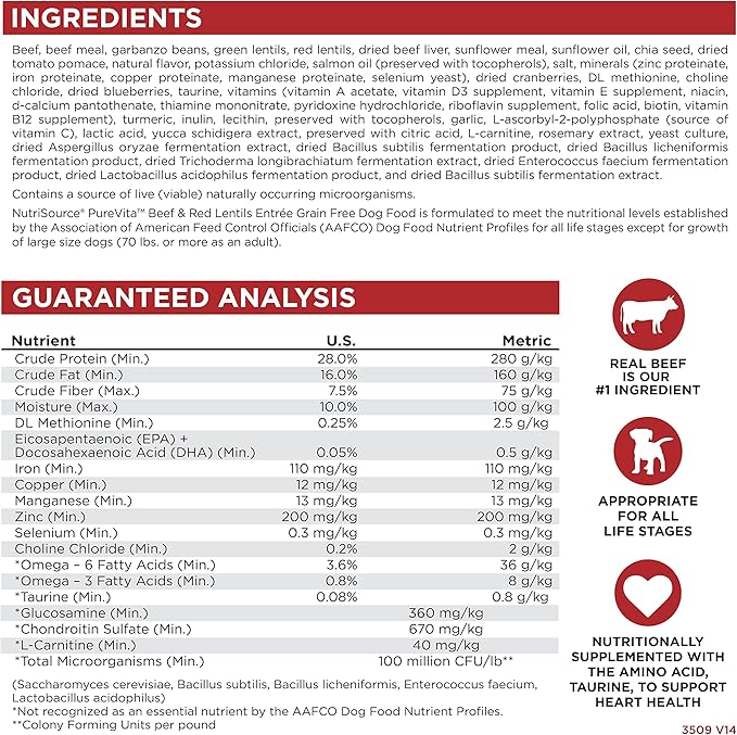 Pure Vita Dog Beef Red Lentils GF 5LB