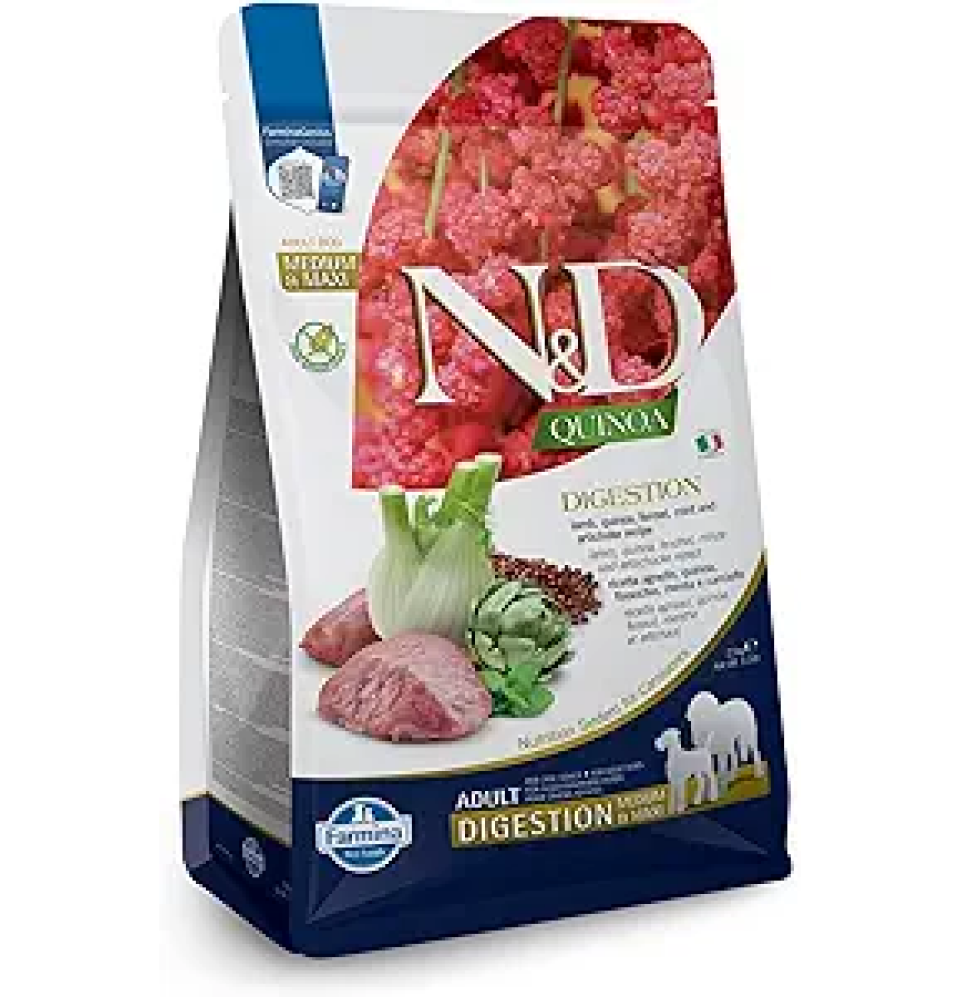 Fresh grass fed lamb (20%), dehydrated lamb (18%), pea starch, chicken fat, quinoa seed (8%), dehydrated whole eggs, flaxseed, dehydrated herrings, herring oil, dried fennel (2.5%), dried mint (2.5%), inulin (0.6%), fructooligosaccharides (0.6%), yeast extract (0.6%) (source of mannan-oligosaccharides), psyllium, potassium chloride, brewers dried yeast, salt, calcium sulphate dihydrate, glucosamine, chondroitin sulfate, vitamin A supplement, vitamin D3 supplement, vitamin E supplement, ascorbic acid, niacin, calcium pantothenate, riboflavin, pyridoxine hydrochloride, thiamine mononitrate, biotin, folic acid, vitamin B12 supplement, choline chloride, beta-carotene, zinc methionine hydroxy analogue chelate, manganese methionine hydroxy analogue chelate, ferrous glycine, copper methionine hydroxy analogue chelate, DL-methionine, taurine, aloe vera gel concentrate, green tea extract, rosemary extract, mixed tocopherols (a natural preservative).