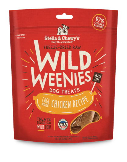Stella & Chewy's Freeze-Dried Raw Wild Weenies dog treats are made with responsibly sourced ingredients in our own USA kitchen. Stella & Chewy's was built on a philosophy that feeding your pet a wholesome diet similar to what their ancestors enjoyed in the wild is the optimal way to help your pet thrive. These treats are ideal for pet parents seeking to add nutrition, reward their dog or puppy for good behavior, or entice a picky eater. With low carbohydrates and no fillers, legumes, artificial colors, flavor or preservatives, these recipes will feed your dog's wild side.