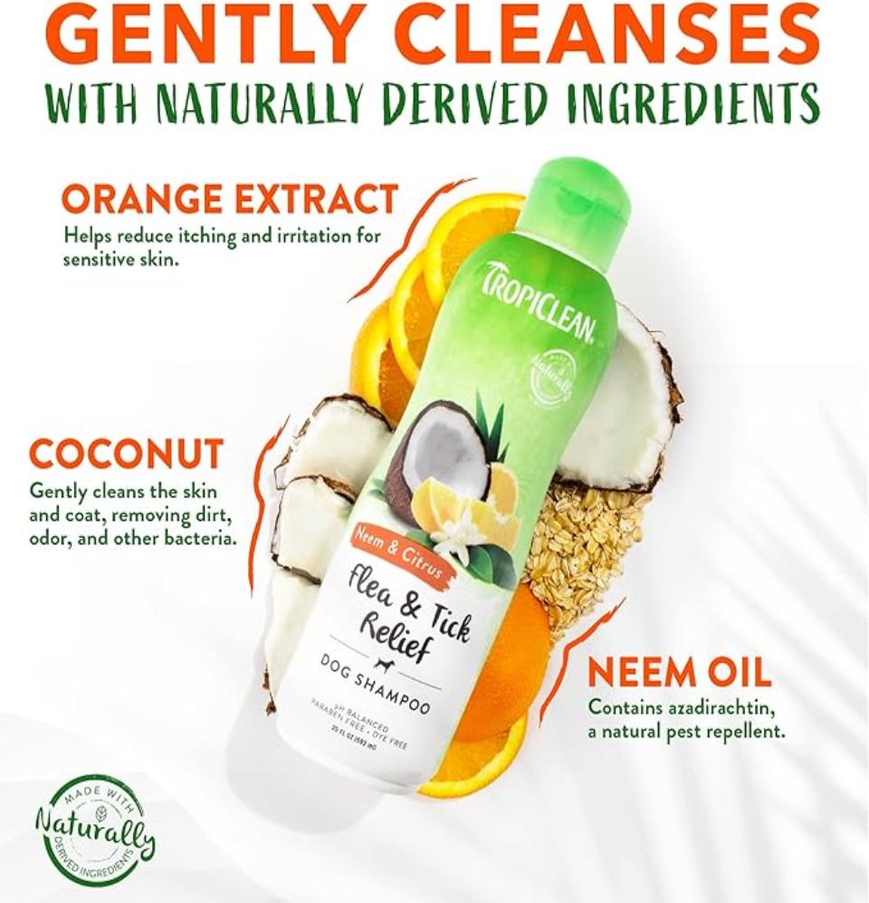 TROPICLEAN Neem & Citrus Flea & Tick Relief Pet Shampoo 20oz