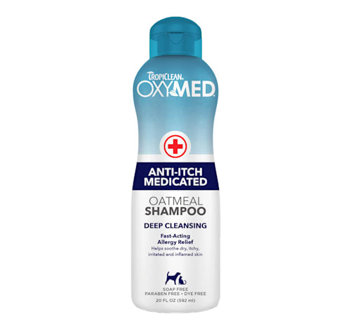 OxyMed Anti-Itch Medicated Oatmeal Shampoo contains a gentle yet powerful combination of alpha hydroxy, beta hydroxy, and tea tree oil that exfoliates the skin s surface and penetrates deep into the pores to cleanse and help soothe dry, itchy, irritated, and inflamed skin. This refreshing, deep-cleansing dog shampoo for itchy skin is enhanced to effectively moisturize and condition the skin and coat while providing soothing relief from itching.