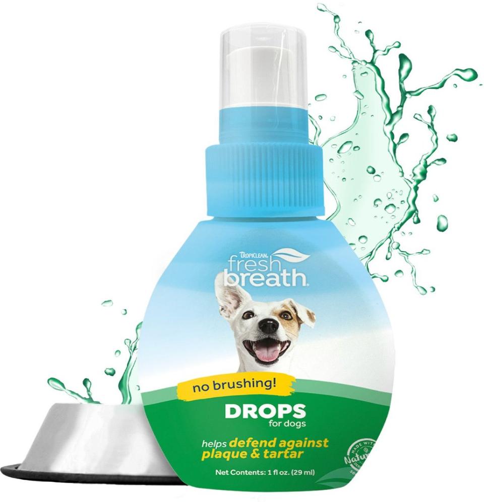 - These easy-to-use dog breath water additive drops come in a small, convenient size that’s perfect for travel and dog parks.