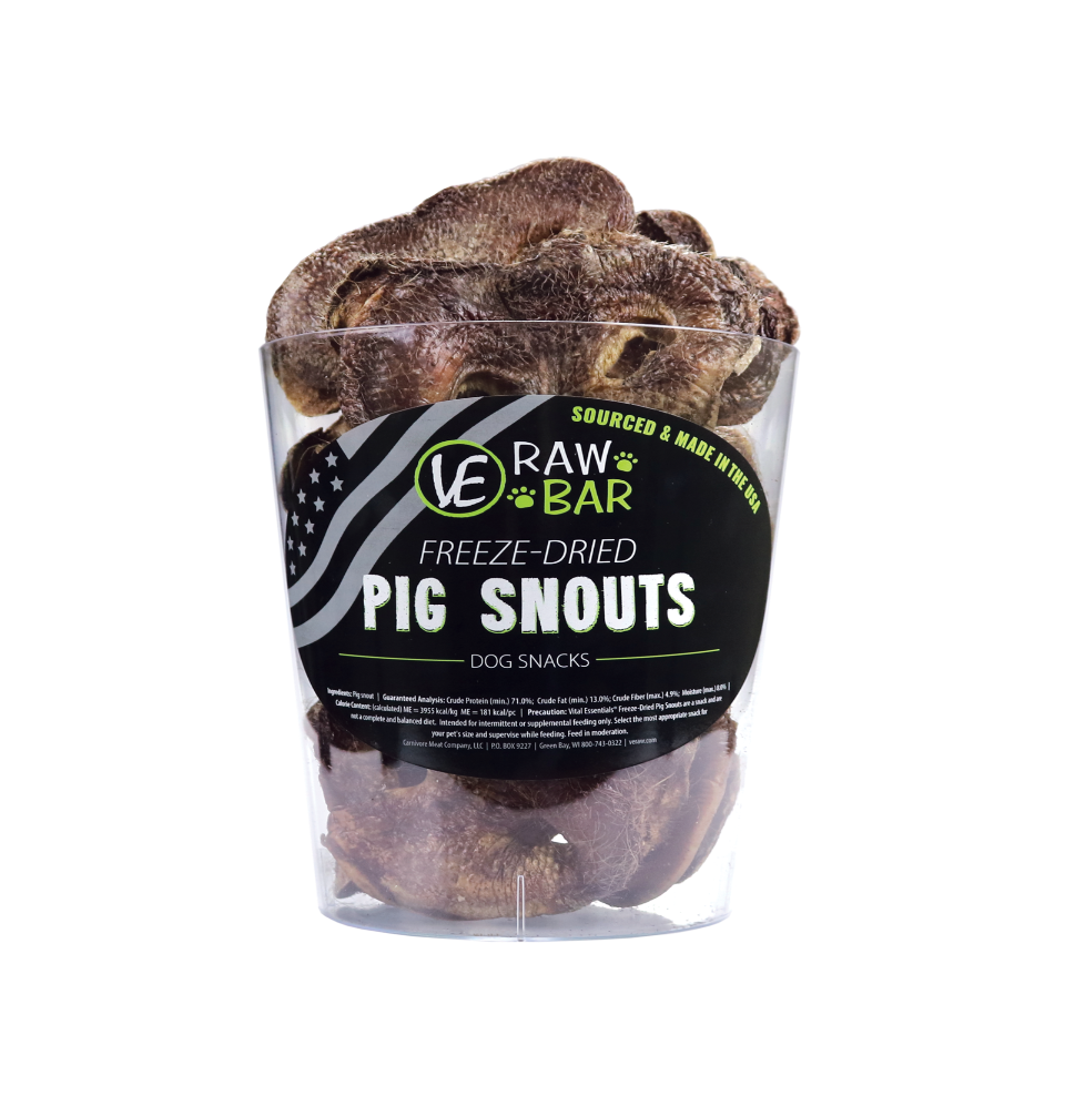 Naturally high in hydroxyproline, an essential in collagen and cartilage for healthy joints, freeze-dried pig snouts make for a nutritious raw food snack between meals, without any fuss. Treat your dog to butcher cut raw protein between meals for a snack that builds strong muscles for more play, naturally supports digestive and oral health, and provides essential nutrients to support your dogs vitality. NOTE: Glass jar with lid is for display purposes only and is not available for sale from Vital Essentials