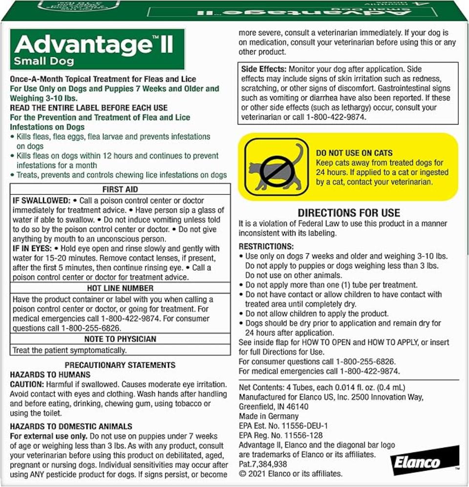 - Vet recommended flea treatment and prevention for dogs at weighing 3 to 10 lbs., at least 7 weeks of age