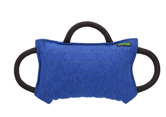 Tear-resistant, durable material sewn together with heavy duty stitching that also features three thick handles for a strong grip, this bite pillow helps transition from tug training to sleeve training.